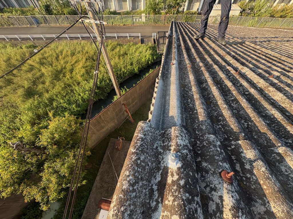 焼津市内の工場にて、台風による突風被害でスレート屋根が飛散してしまい、修理のご依頼をいただきました。