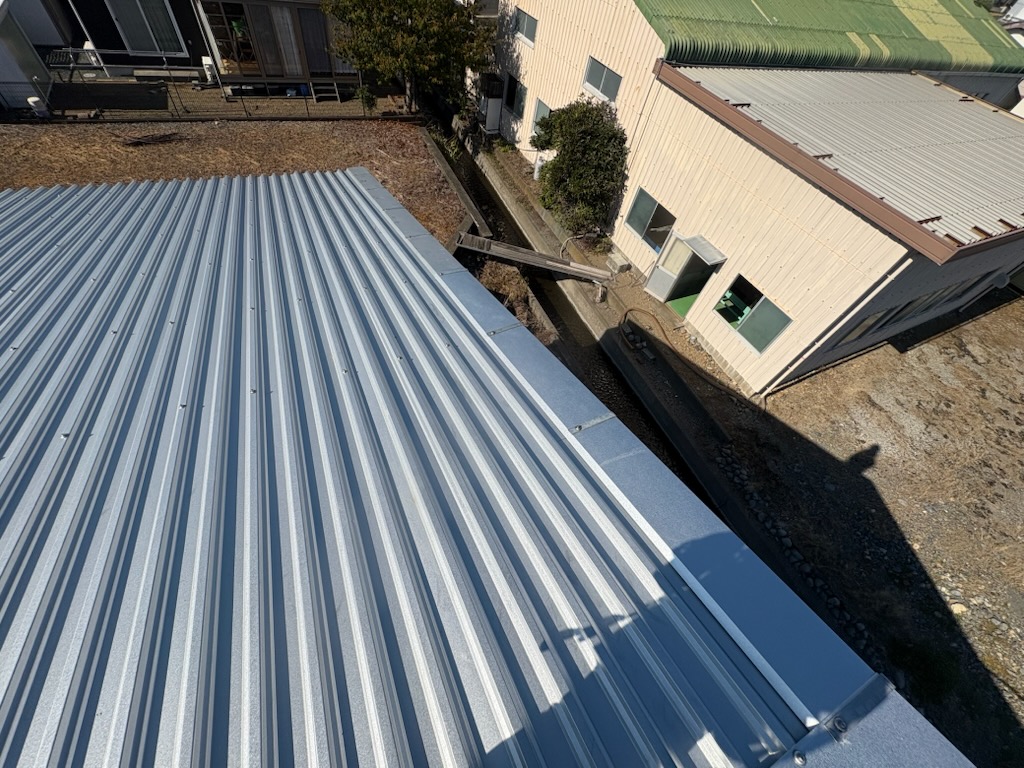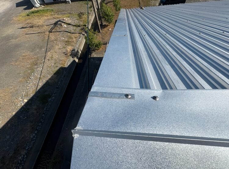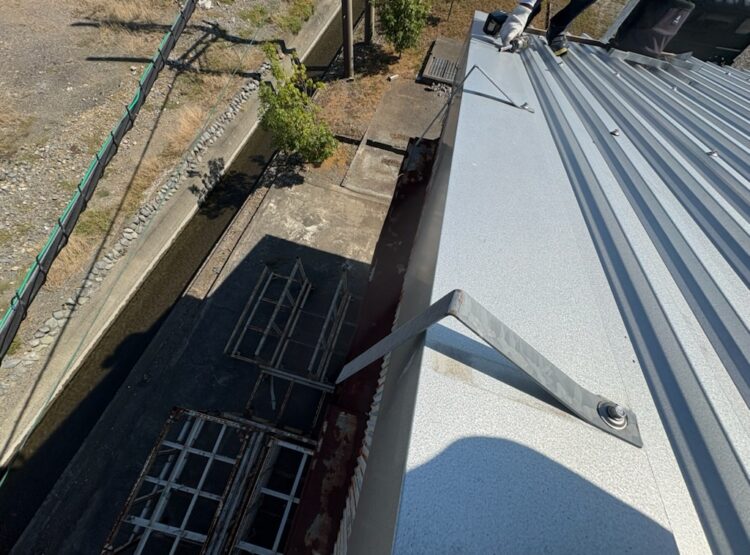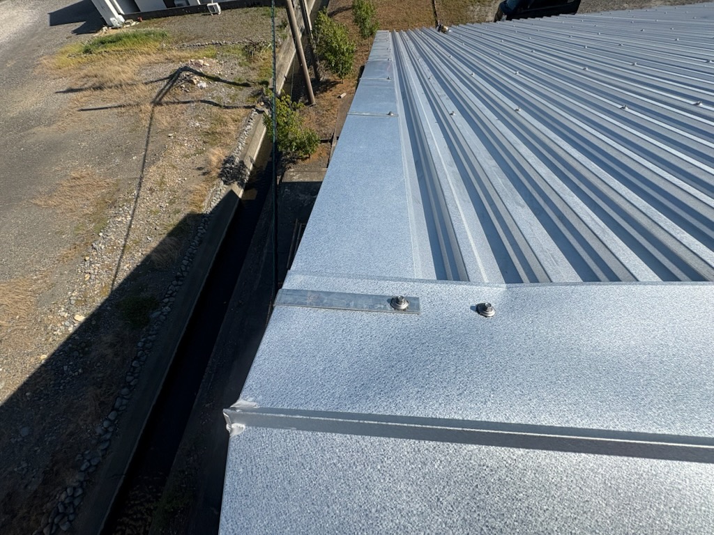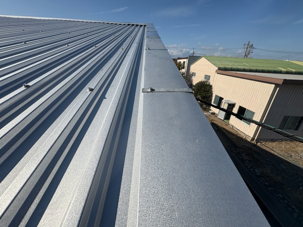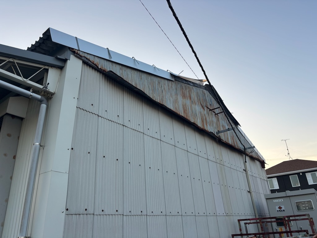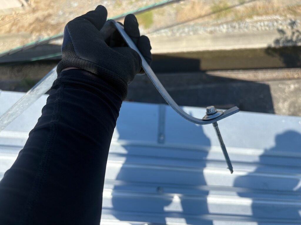 被害を受けた屋根にはもともと飛散防止用の妻アングルが設置されていましたが、大きく変形してしまった箇所の修正と補強を迅速に実施し、安全な状態に復旧しました。