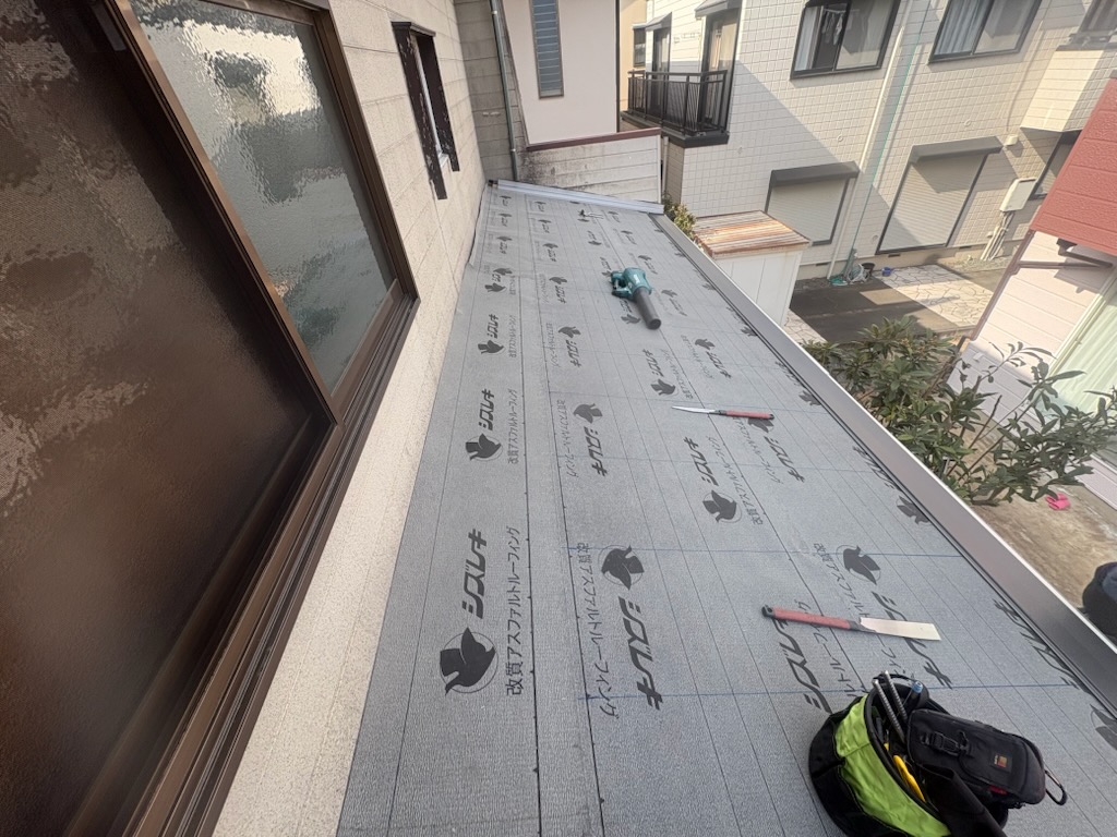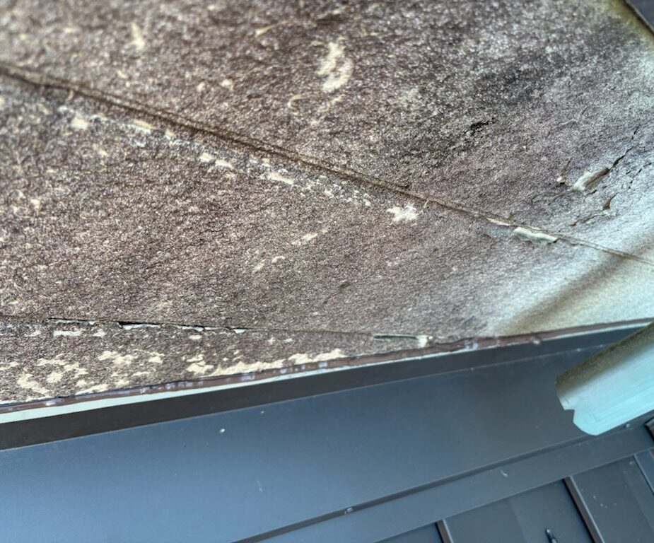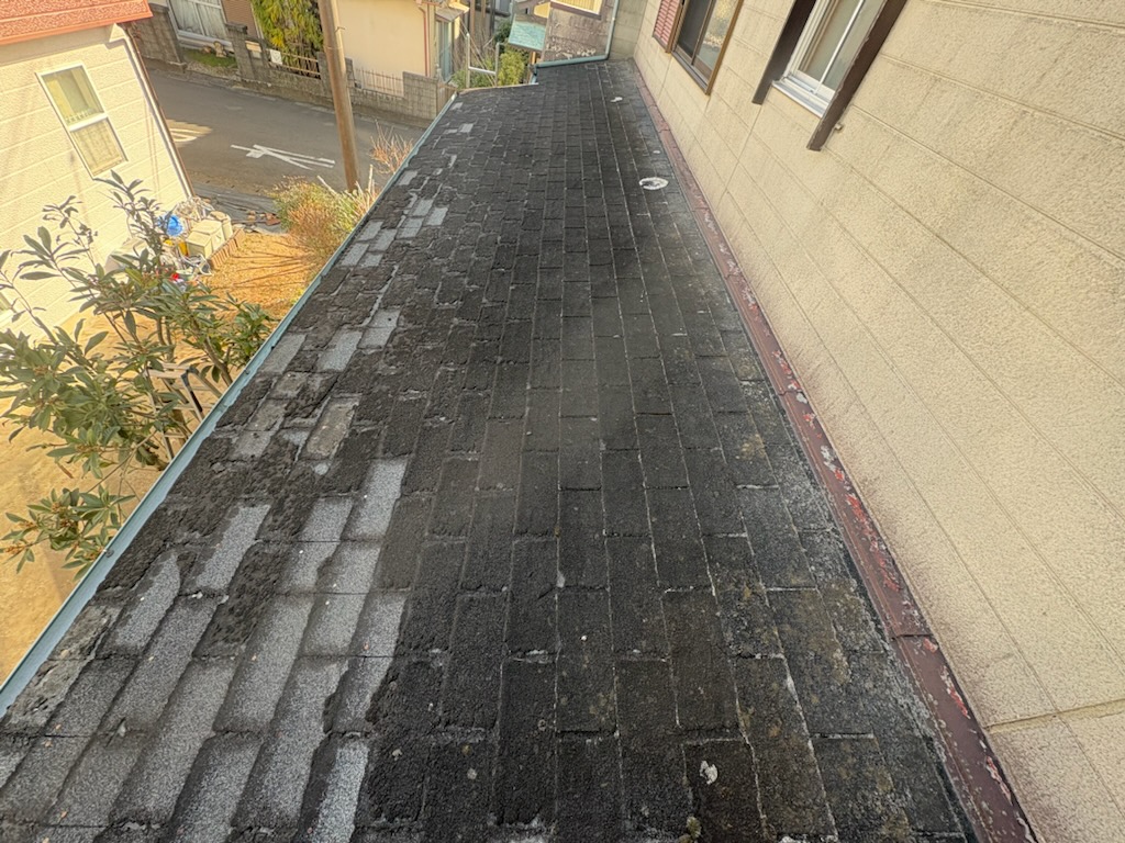 既存屋根は経年劣化により、表面の石粒が剥がれ落ちている状態で、塗装では根本的な改善が難しい状況でした。