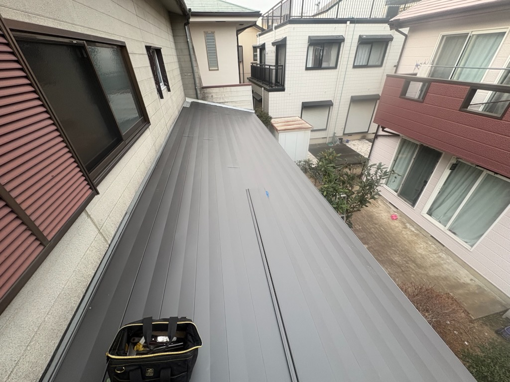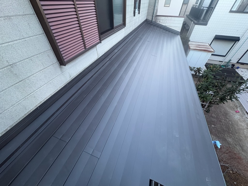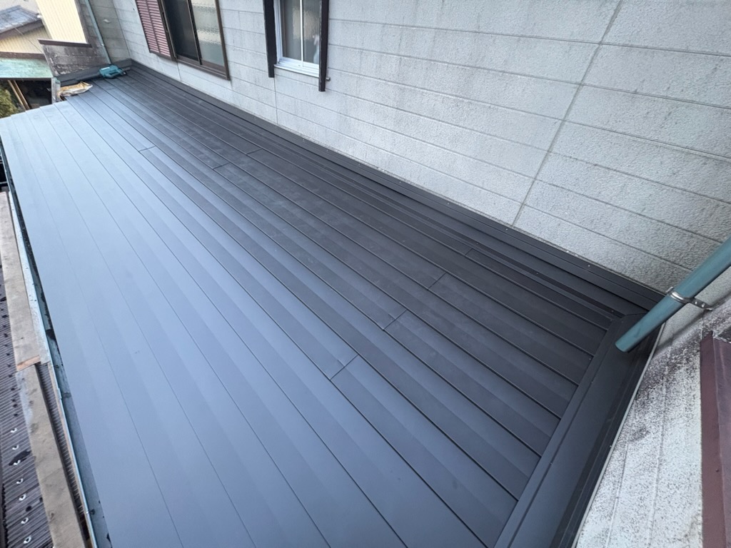 今回は耐久性と施工性に優れた金属屋根材「エバールーフ」を使用し、カバー工法にて改修を行いました。