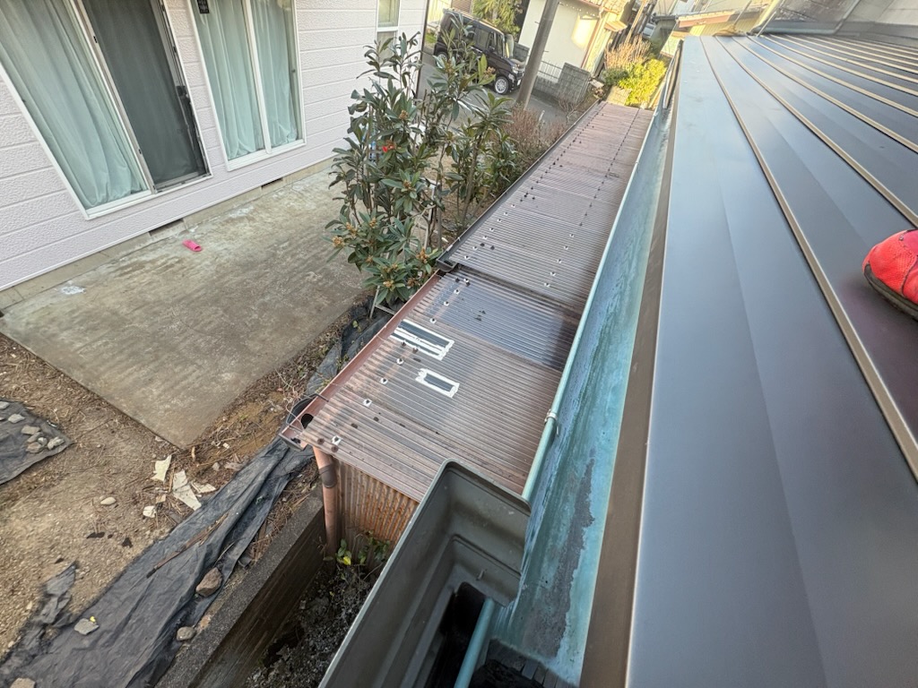屋根の改修と合わせて雨樋内部も清掃し、雨水が正常に流れる状態へ改善しました。