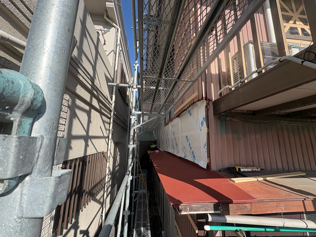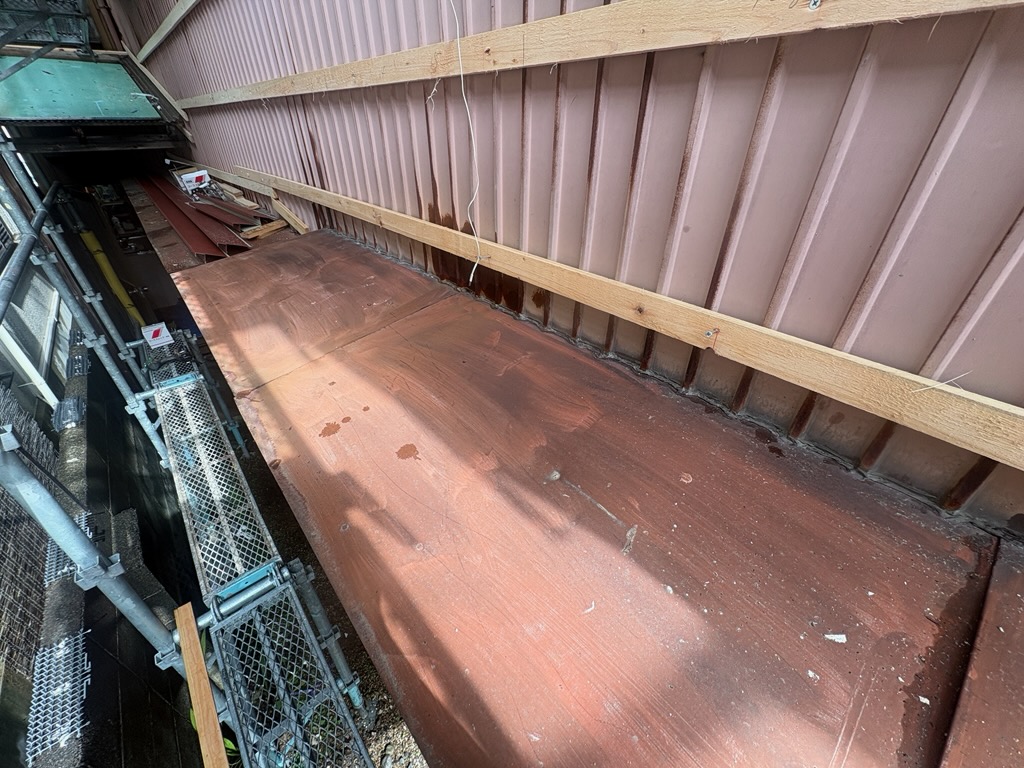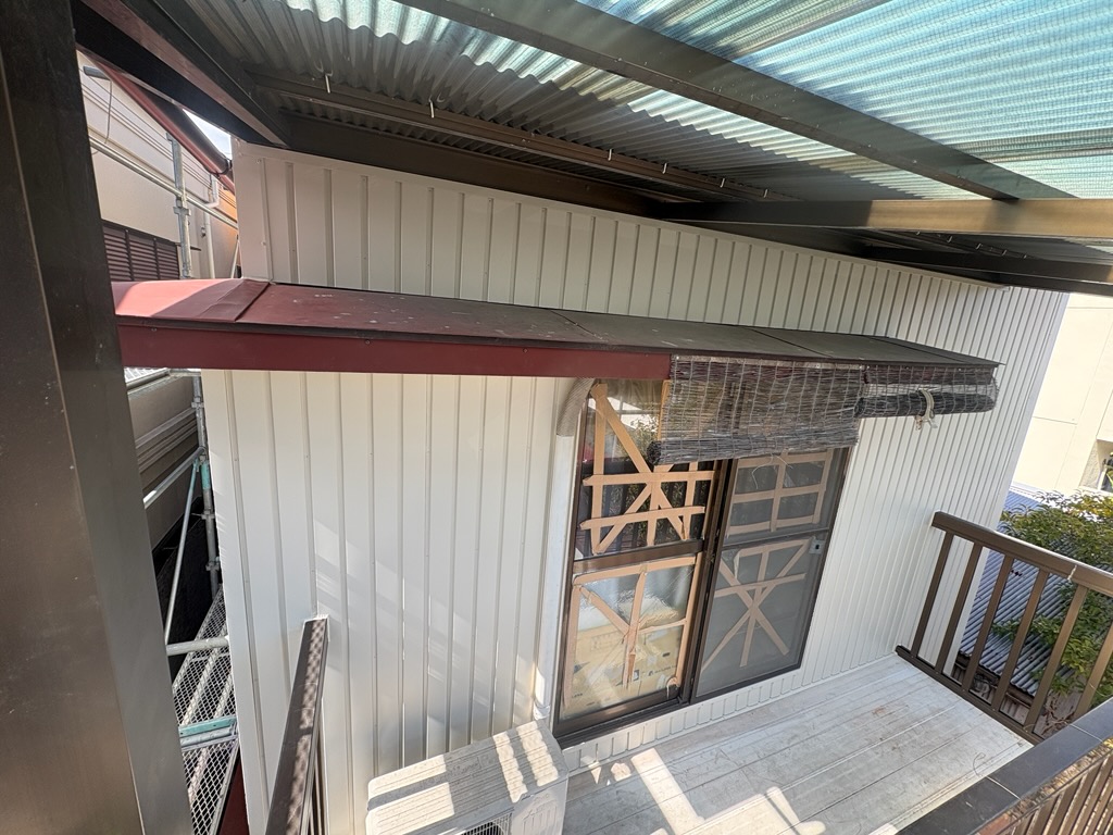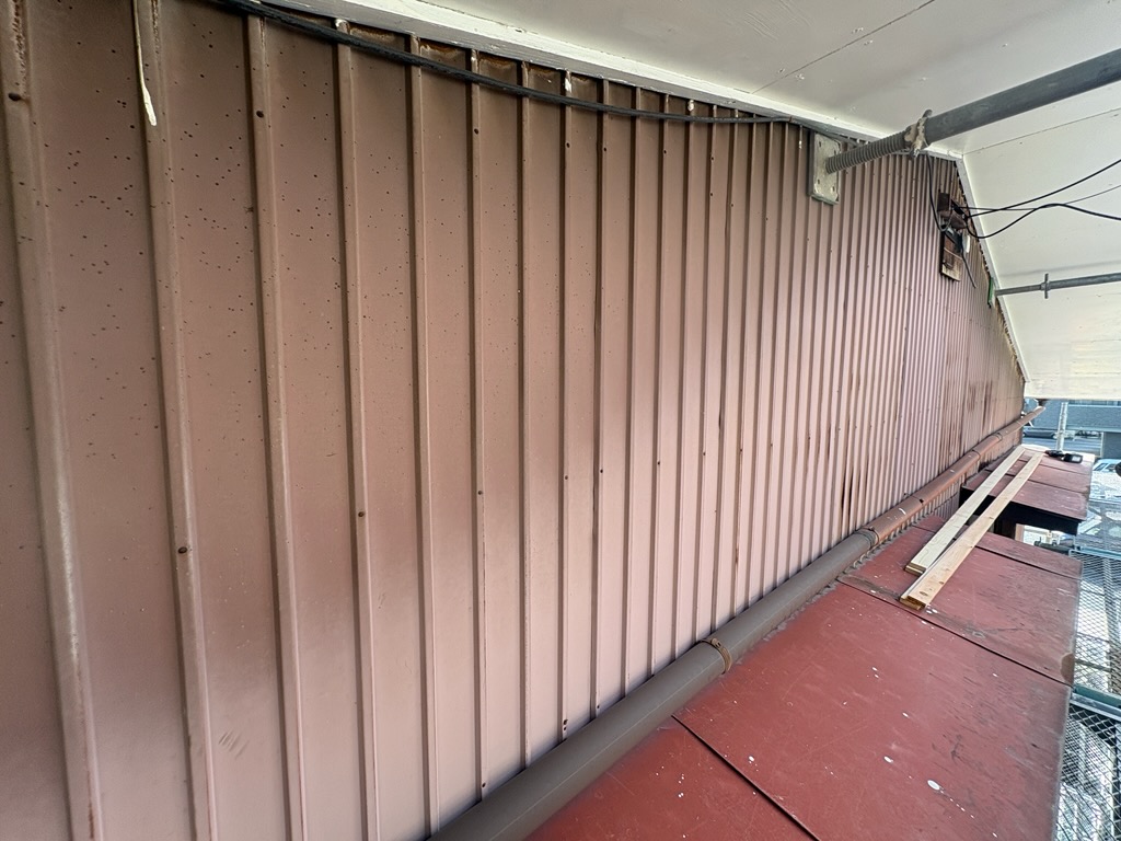 現地調査の結果、雨漏りの影響により軒天の劣化が見られたため、ガルバリウム鋼板による軒天張替え工事を実施。また外壁については、塗装でも対応可能な状態ではありましたが、「今後を考えて長くもたせたい」とのご要望をいただき、ガルバリウム鋼板による外壁リフォームをご提案いたしました。