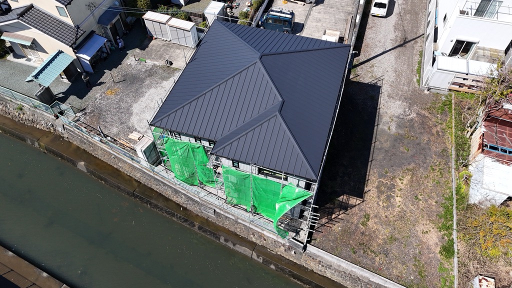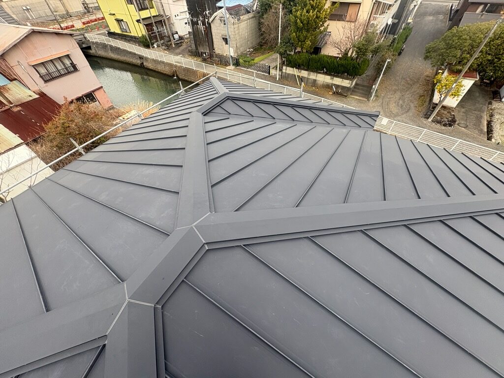 シャープな見た目と施工性の良さから、現在の新築工事では主流となっている金属屋根です。