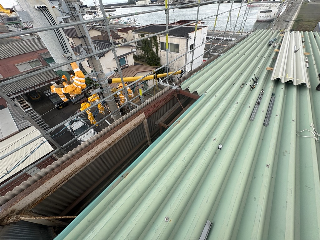 以前よりご依頼をいただいている造船業のお客様より、屋根修理のご相談をいただきました。