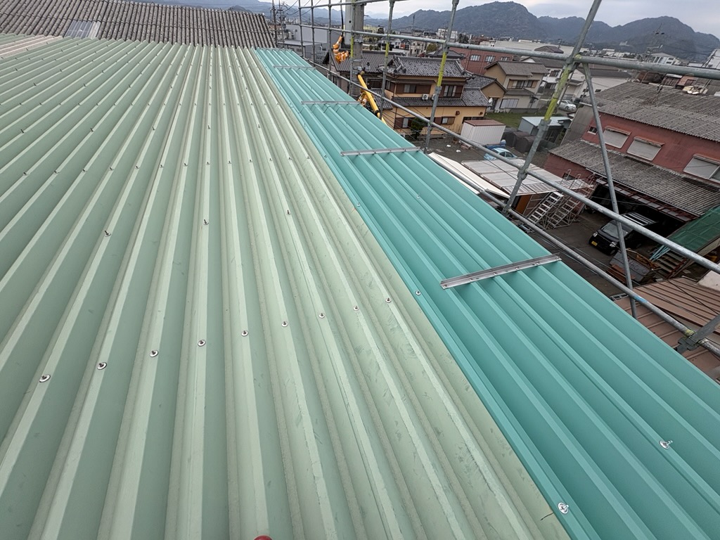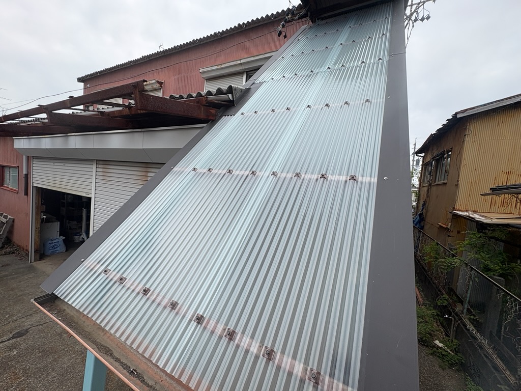被害を受けた屋根は一度すべて解体し、新たに折版屋根を施工いたしました。