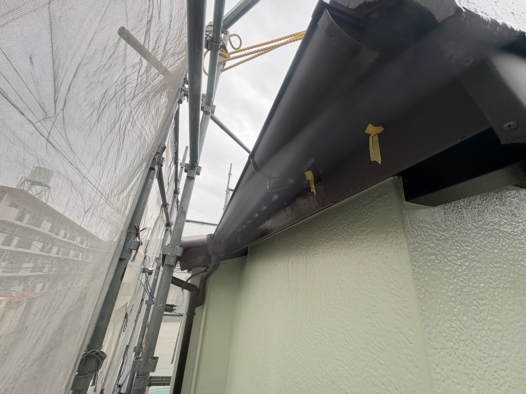 また、サッシからの雨水侵入により支柱の一部に腐食が生じ、その影響で縦樋が外れている状態でした。
